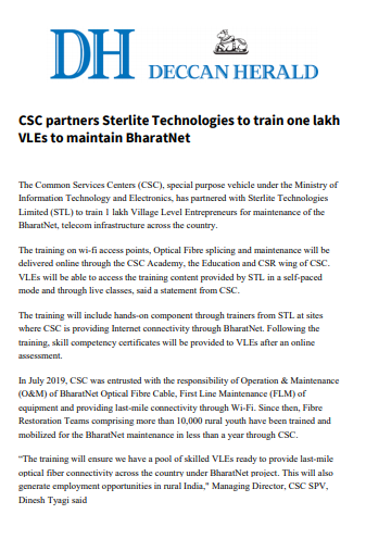 CSCs are the access points for delivery of essential public utility services, social welfare schemes, healthcare, financial, education and agriculture services, apart from host of B2C services to citizens in rural and remote areas of the country. It is a pan-India network catering to regional, geographic, linguistic and cultural diversity of the country, thus enabling the Government’s mandate of a socially, financially and digitally inclusive society.